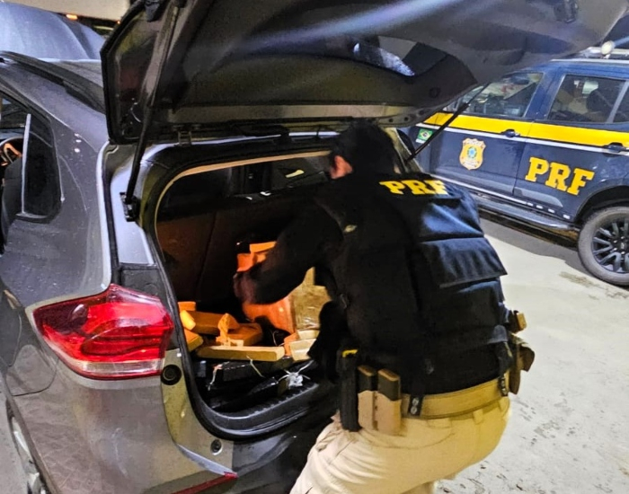 A Polícia Rodoviária Federal (PRF) apreendeu 300 quilos de maconha e recuperou um veículo roubado durante uma fiscalização na BR-101, em Joinville. O motorista, um adolescente que completa a maioridade em poucos dias, desobedeceu à ordem de parada e iniciou uma fuga, invertendo o sentido do carro e seguindo em alta velocidade pela rodovia.