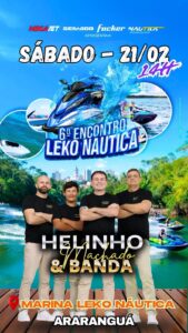 O evento contará com o show de Helinho Machado & Banda às 14h, na Marina Leko Náutica, encerrando as atividades com música ao vivo.