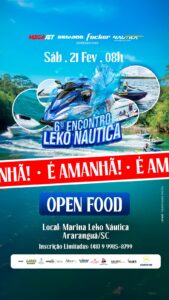 Araranguá receberá no sábado (21), a partir das 8h, o 6º Encontro Leko Náutica, evento voltado para esportes aquáticos que será realizado na Marina Leko Náutica. A programação inclui passeio de jet skis e lanchas, café da manhã, almoço com música ao vivo e sorteio de brindes.