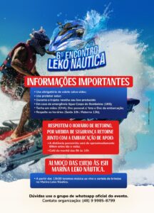 O 6º Encontro Leko Náutica é promovido pelas empresas Megajet, Sea-Doo, Focker e Náutica Motores de Popa, com apoio de parceiros locais.
