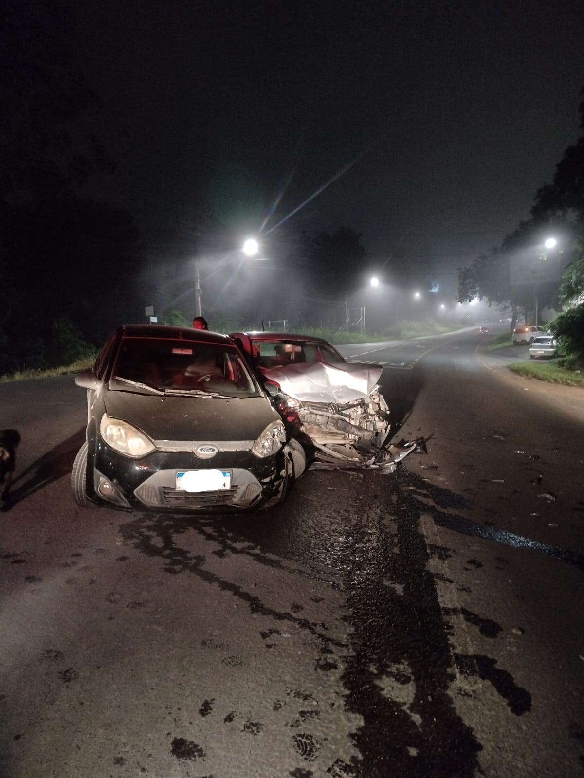 No local, foi confirmada uma colisão entre um VW Gol e um Ford Fiesta, com três vítimas atendidas.