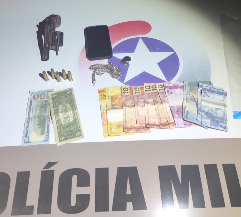 Além da arma e das munições, foram apreendidos um aparelho celular e cédulas suspeitas de falsificação. Todo o material e os dois presos foram encaminhados à delegacia para providências legais. Os outros quatro homens foram ouvidos como testemunhas.