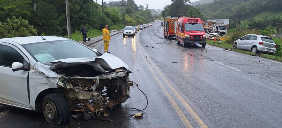 Um grave acidente envolvendo três veículos resultou em uma morte e deixou duas pessoas feridas no último sábado (18), em Braço do Norte. O choque entre um Chevrolet Onix, um Volkswagen Gol e um Fiat Uno ocorreu por volta das 12h45 na SC-370, no bairro Rio Bonito. O motorista do Uno, de 30 anos, não resistiu aos ferimentos e morreu no local, após ficar preso nas ferragens. Os outros dois condutores foram encaminhados ao hospital pelo Samu.