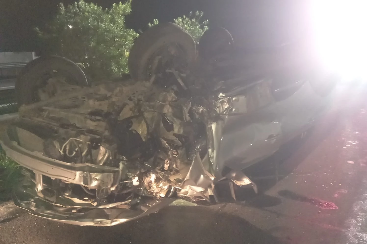 De acordo com o Corpo de Bombeiros Militar de Santa Catarina, o automóvel bateu na parte traseira de um caminhão Volvo FH antes de tombar na pista.