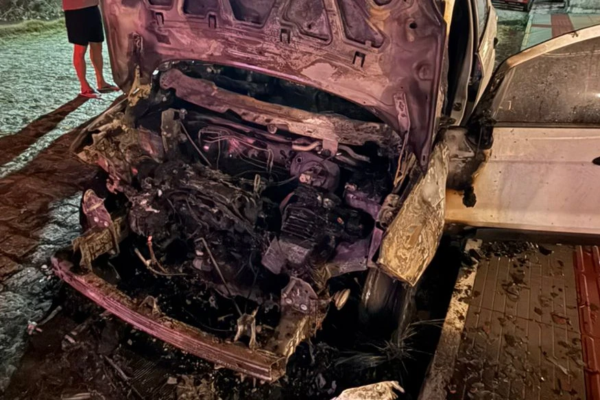 Um Ford EcoSport ficou parcialmente danificado por um incêndio na noite de quarta-feira (4), por volta das 20h, na rua Dr. Aurélio Rótolo, no bairro Mar Grosso, em Laguna.