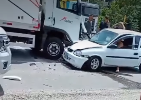 A colisão envolveu um carro e um caminhão. Apesar do susto, foram registrados apenas danos materiais. Não houve feridos.