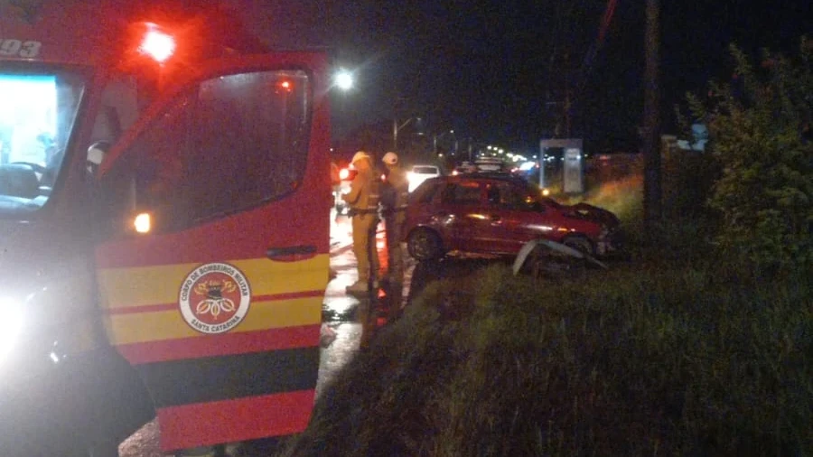 Foto: Divulgação/CBMSCTrês idosos precisaram de atendimento hospitalar após um acidente de trânsito envolvendo um Chevrolet Corsa e um Toyota Corolla, no bairro Vila Nova, em Içara. A colisão aconteceu na rodovia Deputado Paulino Búrigo, na noite deste domingo (18), por volta das 20h30.