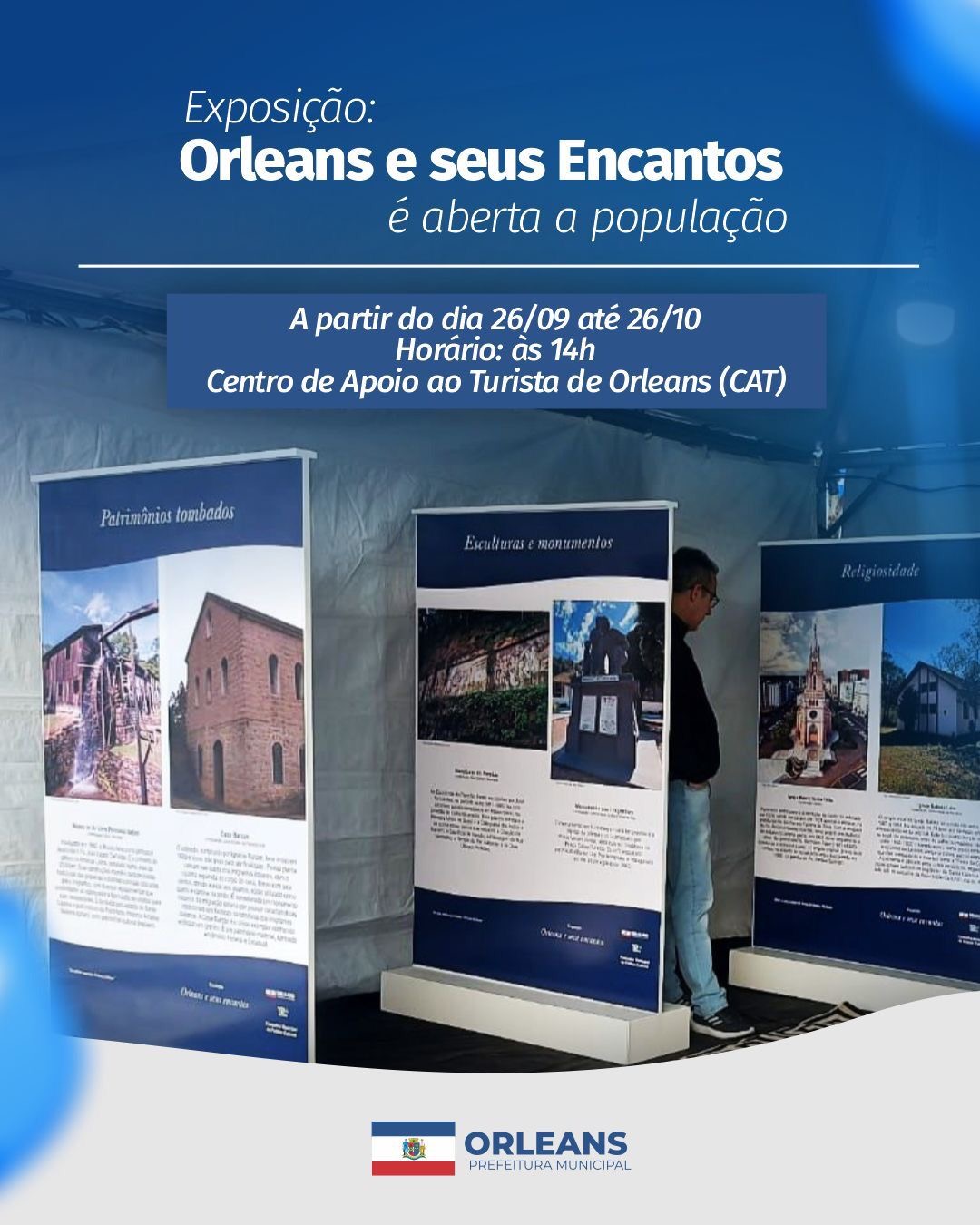 A exposição reúne em painéis informativos os principais patrimônios culturais, belezas naturais, monumentos e símbolos da cidade, incluindo a história do município e seu hino. Idealizada pelo Conselho Municipal de Política Cultural (CMPC) em parceria com a Prefeitura, a iniciativa tem o objetivo de dar visibilidade aos bens que tornam Orleans única, incentivando moradores e turistas a conhecerem de perto essas riquezas.