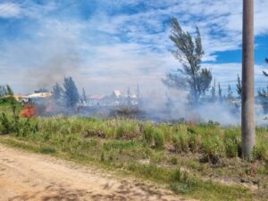 Um incêndio em vegetação foi controlado na manhã deste sábado (27), no bairro Dunas do Sul, em Jaguaruna. O fogo começou em um terreno baldio na Rua Pardal e mobilizou os Bombeiros Voluntários do município por volta das 10h30.