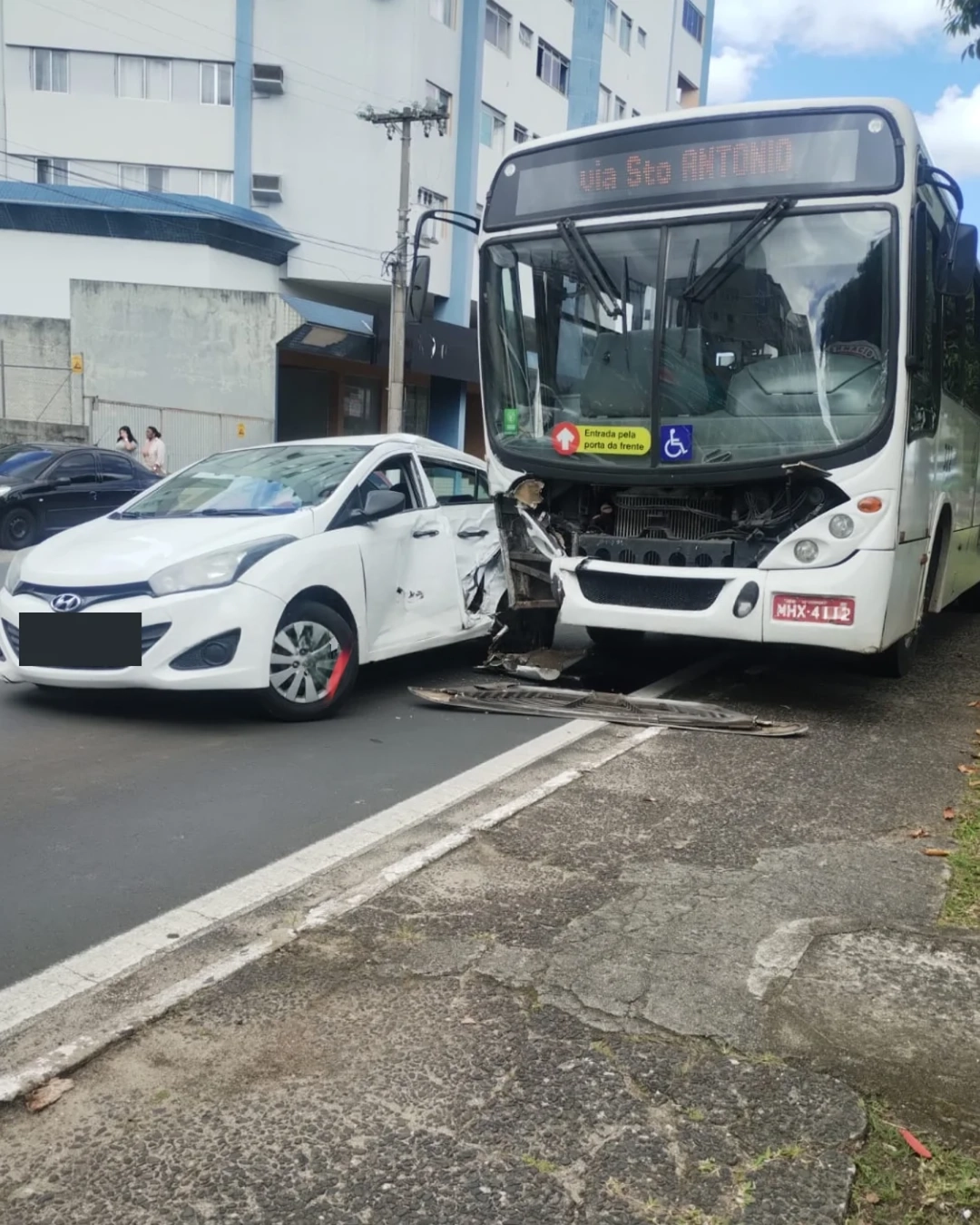 O acidente ocorreu na Avenida Centenário, nas proximidades do Supermercado Angeloni (ponto usado apenas como referência). Uma mulher grávida precisou de atendimento imediato e foi encaminhada pela equipe de resgate para avaliação médica.