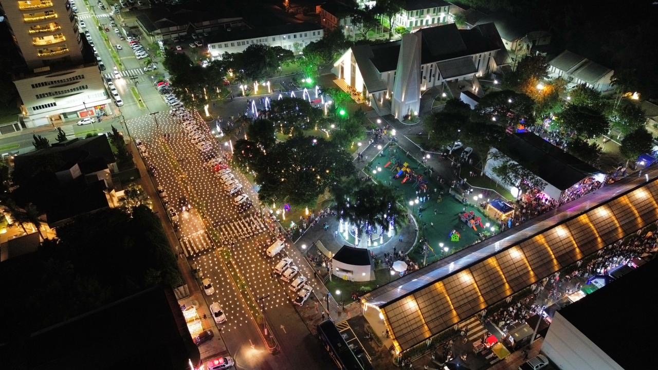 Novo espaço público foi aberto à comunidade com shows, Papai Noel e o acendimento das luzes de Natal, em evento que integra a programação oficial da cidade até 20 de dezembro.