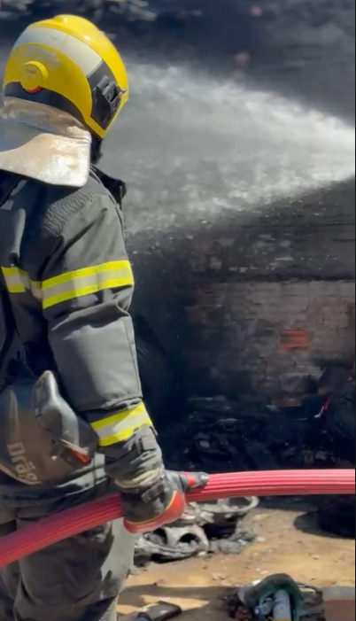 Segundo os bombeiros, ao chegar ao local foi feita a avaliação da área e a eliminação de riscos. Em seguida, a equipe montou linhas de combate para extinguir os focos restantes. O fogo atingiu uma área utilizada para armazenar pneus, causando danos em parte da estrutura, incluindo uma porta de madeira e o telhado.