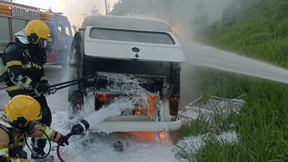 De acordo com o Corpo de Bombeiros, o fogo se concentrou no compartimento do motor do veículo. A guarnição isolou a área e realizou o combate às chamas, seguido do trabalho de rescaldo, utilizando água e espuma.