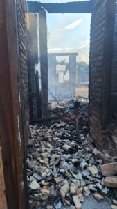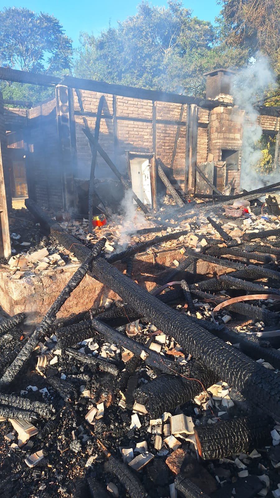 Ao chegarem ao local, os bombeiros encontraram a edificação, de aproximadamente 100 metros quadrados e construída em alvenaria e madeira, já tomada pelas chamas, que estavam em fase de diminuição. O fogo foi percebido por um vizinho, que acionou o socorro. No momento do incêndio, não havia ninguém no imóvel.