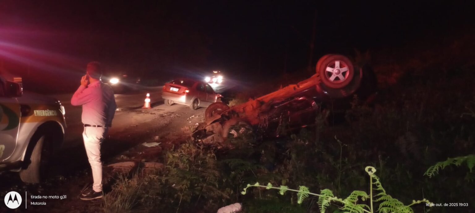 Uma colisão frontal seguida de capotamento movimentou a SC-446, no bairro Rio Fiorita, em Siderópolis, na noite desta quinta-feira (16). O acidente, envolvendo um Ford Ka e um Ford Fiesta, foi atendido pelo Corpo de Bombeiros Militar de Urussanga. Após a batida, o Ford Ka saiu da pista e capotou, enquanto o Ford Fiesta parou na margem da rodovia.