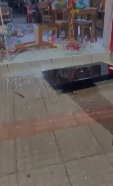 Durante a ação, os criminosos levaram duas televisões e deixaram uma terceira caída no chão, possivelmente ao fugirem do local.