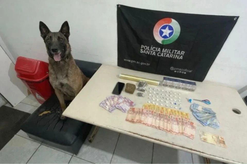 Segundo a PM, a guarnição chegou ao endereço após denúncias indicarem que as drogas estariam escondidas atrás do balcão do comércio. Com o apoio de um cão farejador, os agentes localizaram uma porção de maconha pesando 258 gramas e diversas petecas de cocaína, que totalizaram 45 gramas.