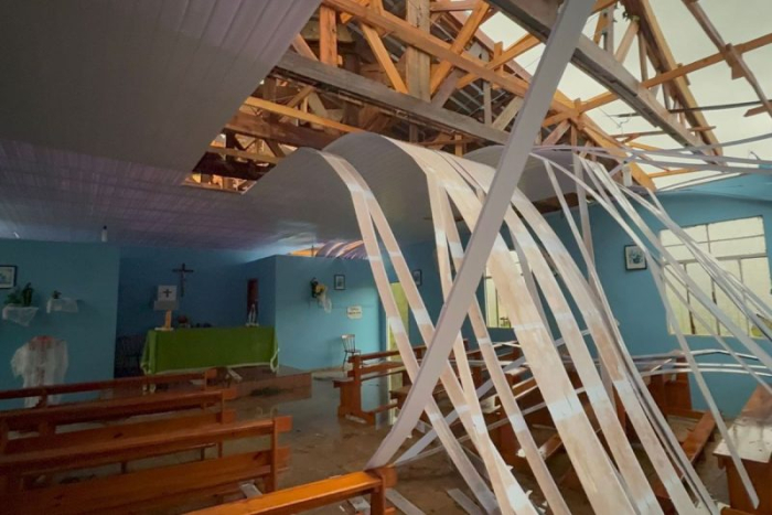 Um ciclone extratropical atingiu com violência o Extremo-Oeste de Santa Catarina, deixando um cenário de devastação no município de Dionísio Cerqueira. Na comunidade de Linha Gleba da União, a Igreja Católica teve parte de sua estrutura destruída. No entanto, o que chamou a atenção e comoveu os moradores foi um detalhe em meio à destruição: o espaço do altar, com as imagens dos santos e a Bíblia, permaneceu completamente intacto, enquanto o restante do telhado foi arrancado pelos ventos.