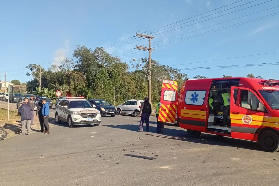 Motociclista sofre politraumatismo após colidir contra carro, no interior de Lauro Müller
