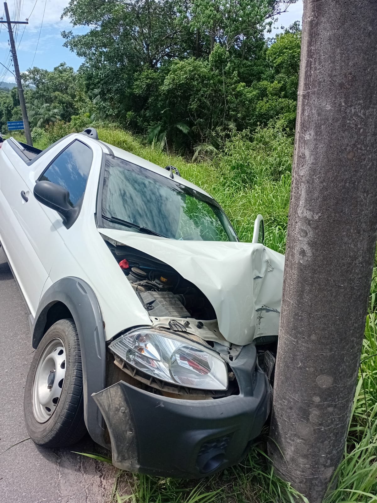 O acidente envolveu um Fiat Strada, cujos airbags foram acionados com a batida. A motorista confirmou que não fazia uso do cinto de segurança no momento da colisão, o que potencializa o risco de lesões.