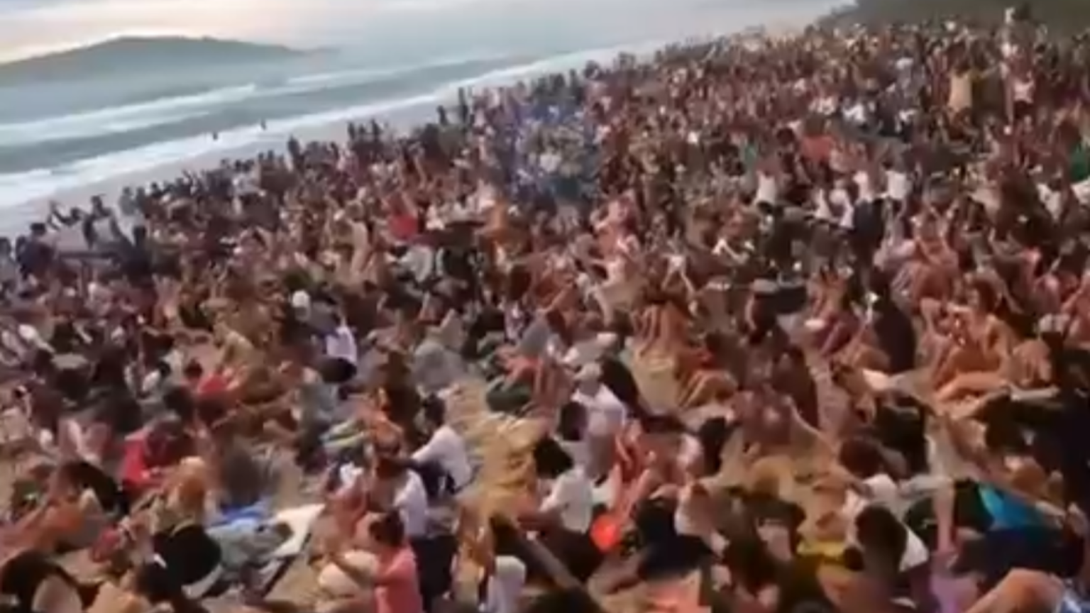Com o som das ondas de fundo, louvores e momentos de oração marcaram o início da manhã. Muitos permaneceram sentados na areia, enquanto outros ficaram de pé, de mãos erguidas, emocionados e registrando o momento. Imagens aéreas revelaram a extensão do encontro, com uma longa faixa da orla ocupada.