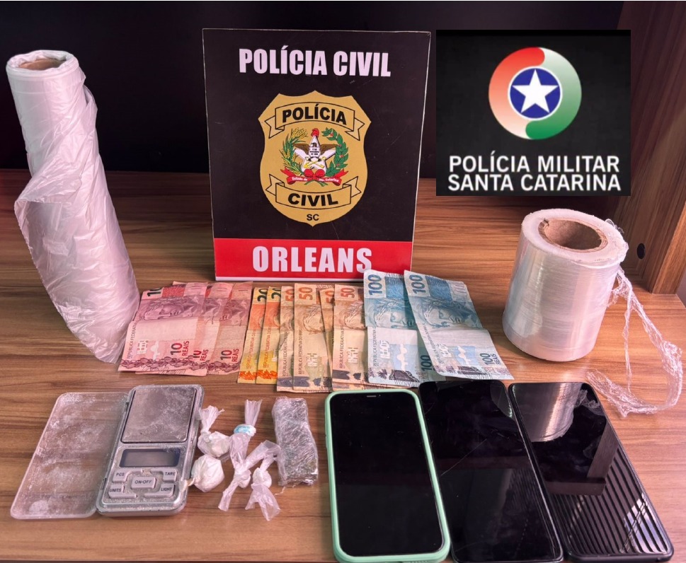 Um homem investigado por tráfico de drogas foi preso em Orleans durante uma operação conjunta da Polícia Civil e da Polícia Militar. Os mandados de prisão preventiva e de busca e apreensão foram cumpridos na residência do suspeito, após autorização da Justiça.