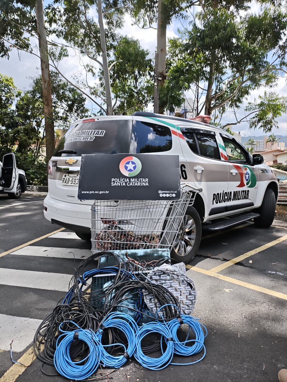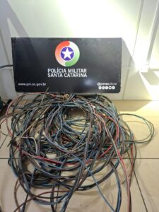 Ação integrada entre Polícia Militar, Prefeitura e Celesc vistoriou 21 estabelecimentos, apreendeu 80kg de fiação e combateu crimes de receptação e furto de energia.