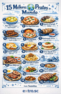 A picanha conquistou a 15ª posição na lista dos 100 melhores pratos do mundo elaborada pelo TasteAtlas, plataforma internacional que reúne avaliações de usuários sobre gastronomia. Além do corte brasileiro, a costela bovina aparece em 35º lugar e a moqueca baiana na 98ª colocação. A lista se refere ao período 2025/2026.