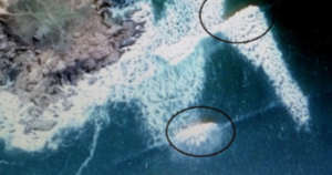 Destroços do vapor Catalão estão submersos a poucos metros da orla em Laguna, no Sul catarinense, e podem ser vistos em imagens aéreas.