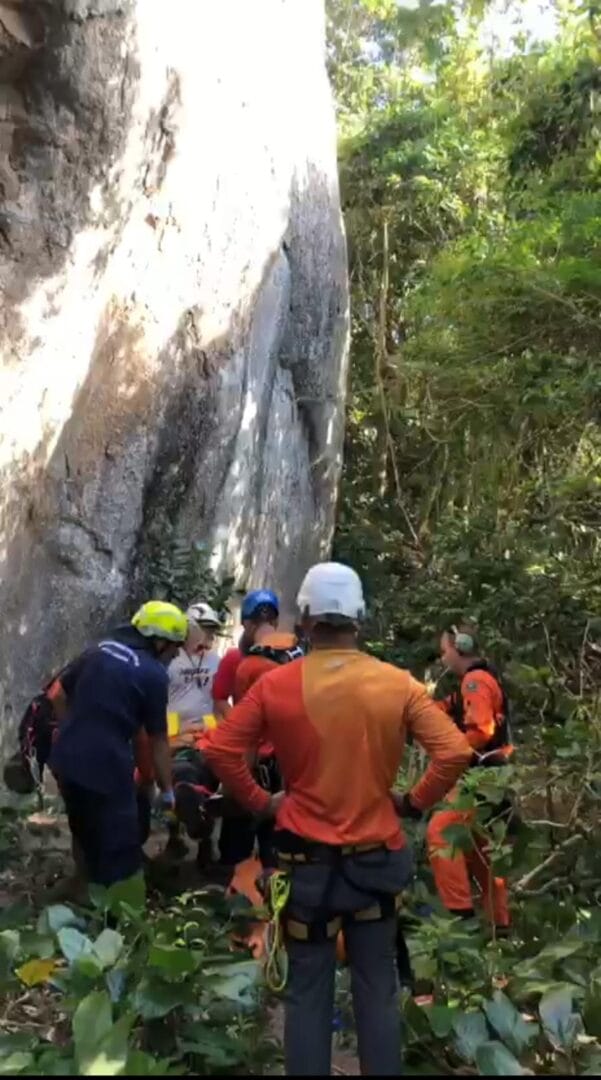 De acordo com os bombeiros, a vítima se preparava para iniciar uma prática de rapel quando escorregou por uma inclinação rochosa de 15 metros, colidindo em uma fenda. Em seguida, sofreu uma segunda queda vertical de cerca de 3 metros. Apesar de ter perdido a consciência momentaneamente, o homem recobrou os sentidos antes da chegada do socorro e foi encontrado consciente, apresentando escoriações pelo corpo e uma lesão no membro inferior esquerdo.