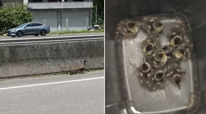 Na tarde desta segunda-feira (23), policiais da Polícia Rodoviária Federal (PRF) resgataram uma mãe marreca e seus nove filhotes que estavam encurralados na BR-101, em Tubarão. As aves caminhavam junto à mureta que divide as pistas, expostas ao intenso fluxo de veículos.