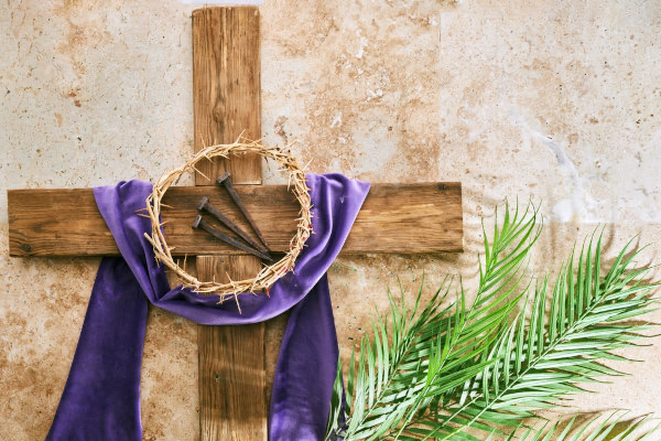 Palm sunday background. Cross and palm on vintage background.Período de oração, jejum e caridade convida os fiéis à conversão e à preparação para a Páscoa