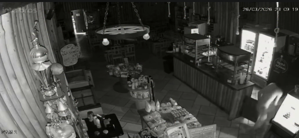Na verificação, foi constatado que uma janela nos fundos havia sido forçada para a entrada. Foram levados cerca de R$ 300 em dinheiro, além de carteiras de cigarro. A Polícia Militar realizou rondas nas proximidades, mas ninguém foi localizado. As imagens registradas devem contribuir para a identificação do autor.