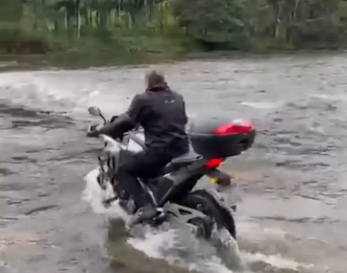 Um motociclista provocou susto e repercutiu nas redes sociais ao tentar atravessar a conhecida ponte invertida, em Garuva, no Norte catarinense, no último sábado (27). Ignorando o risco iminente, o homem avançou sobre a estrutura no momento em que a correnteza do rio estava forte, sendo arrastado pela água logo em seguida.