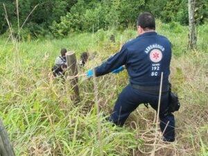 Devido ao difícil acesso, já que o incidente ocorreu dentro de área de mata, foi necessário o uso de técnicas de resgate vertical para a retirada do corpo. Após a remoção, a vítima foi encaminhada ao IML.