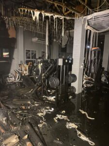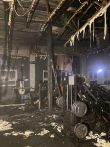 Chamas na madrugada destruíram 25% da academia do Clube Grêmio Fronteira, em Araranguá; bombeiros usaram 2 mil litros de água para controlar o fogo, e as causas ainda são investigadas.