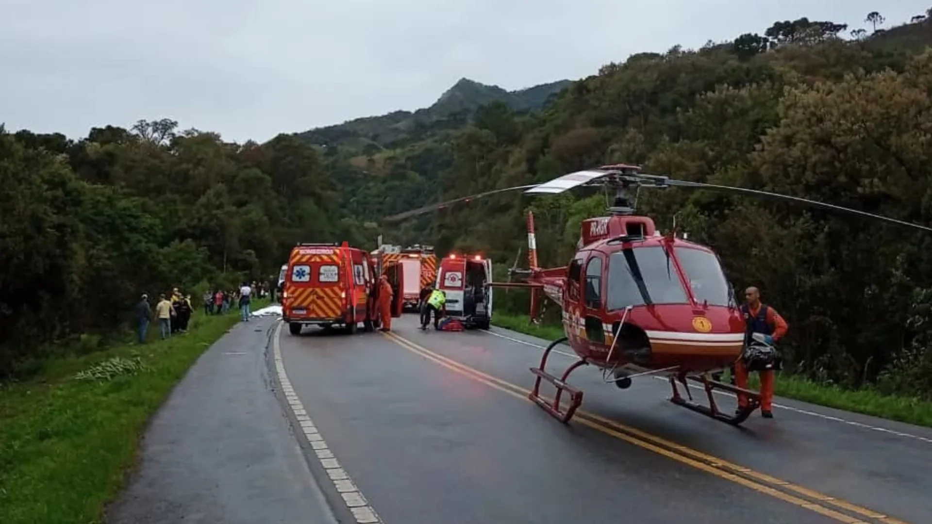O Renault Sandero ocupado pelas vítimas despencou de uma ribanceira de cerca de 15 metros. Duas pessoas faleceram no local — uma mulher de 48 anos e um homem que foi lançado para fora do veículo. A terceira vítima chegou a ser socorrida com vida, mas sofreu parada cardiorrespiratória e acabou morrendo no local.