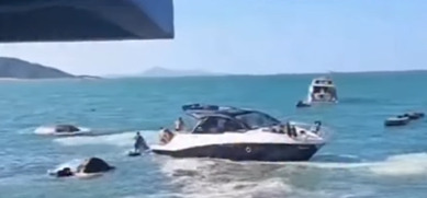 Pouco tempo depois, outra situação de risco foi registrada no mar. O condutor de uma lancha teria perdido o controle durante uma manobra, quase colidindo com um jetski que estava próximo.